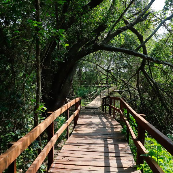 Servicio: pasarelas y senderos que permiten explorar un hermoso tramo de selva en galería, con miradores a humedales que están cubiertos de flores. El objetivo es abrirlo al público en verano.