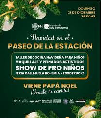 Te esperamos el domingo 21 de diciembre con Taller de cocina navideña, stand de maquillajes y peinados artísticos, Callejuela Bohemia y los mejores FoodTrucks. Además, Papá Noél va a estar recibiendo cartitas y ProNiños presentará su show navideño. Más Info: IG @gobiernodefunes